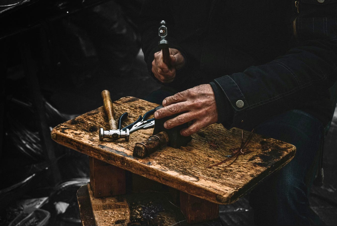I realise too late that I’m romanticising his nature. I’ve been reading Steinbeck, noticing only the best aspects of his working-class scenes, and I see Mike on every page. He lives in a place like Cannery Row, his closest companion is canine (a coddled Jack Russell named Tilley), he’s fuelled by aggressive coffee and rough whiskey. I pay close attention to his instructions to keep every offcut of copper piping and the best methods for cleaning tools; I’m seeking metaphor within these practical lessons, shining his coarse, coal words into the glittering diamond of wisdom.