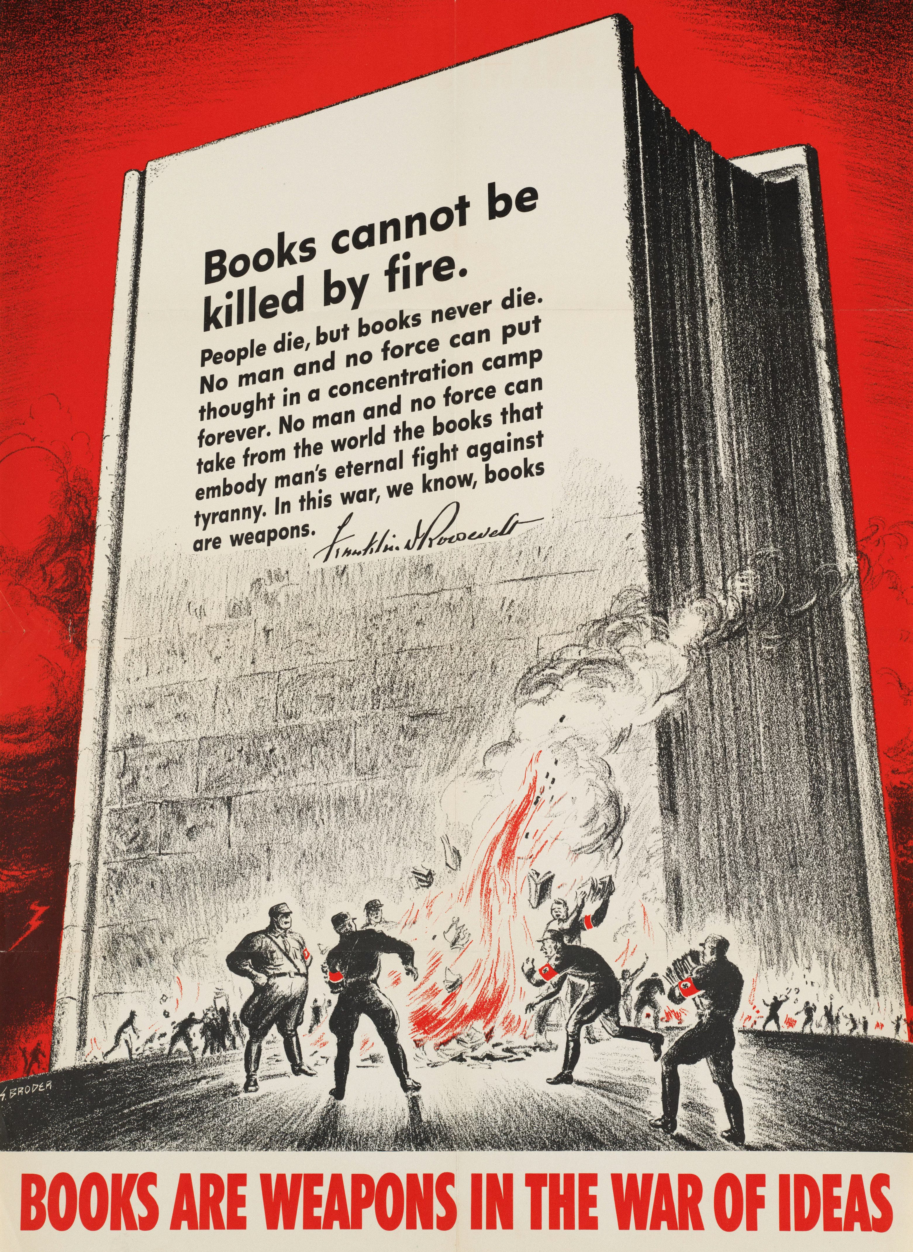 Culture, then, is the manifestation of why we fight to keep our way of life alive, why we hope to survive at all, beyond mere animal instinct. In the inheritance and potential of culture, we find a plurality of ways to live, myriad approaches to the deepest questions of existence. The enemies of culture don’t require that plurality because they already have — or so they claim — the answer to everything. The Nazis and their racial “solutions”, every political and religious fundamentalist with a one-size-fits-all answer, they all fear defiance to their authority. Art and culture are the most potent challenges to such tyranny.